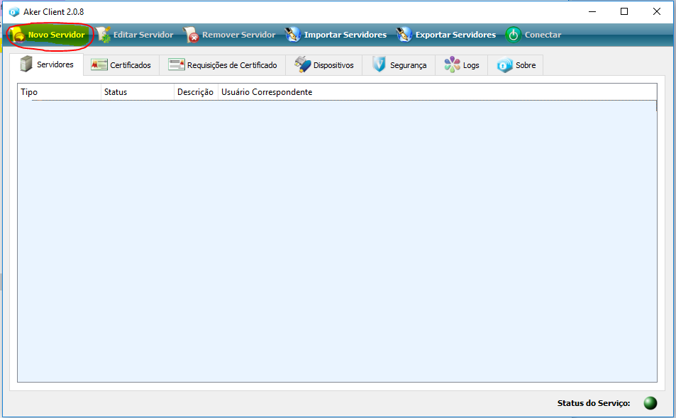 Observe que o sistema foi configurado para inicio manual. Ou seja antes de executar qualquer aplicação é necessário abrir o aplicativo e clicar em conectar. Recomenda se criar um atalho para facilitar o acesso ao aplicativo.