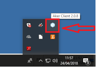 Caso não encontre o icone é porque o aplicativo não foi aberto ainda. Na área de trabalho dê um clique duplo no icone do akerclient.exe